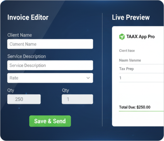 TAAX APP is your one-stop shop for success. Manage appointments, streamline workflows, connect with clients, and more – all from a single, user-friendly platform.