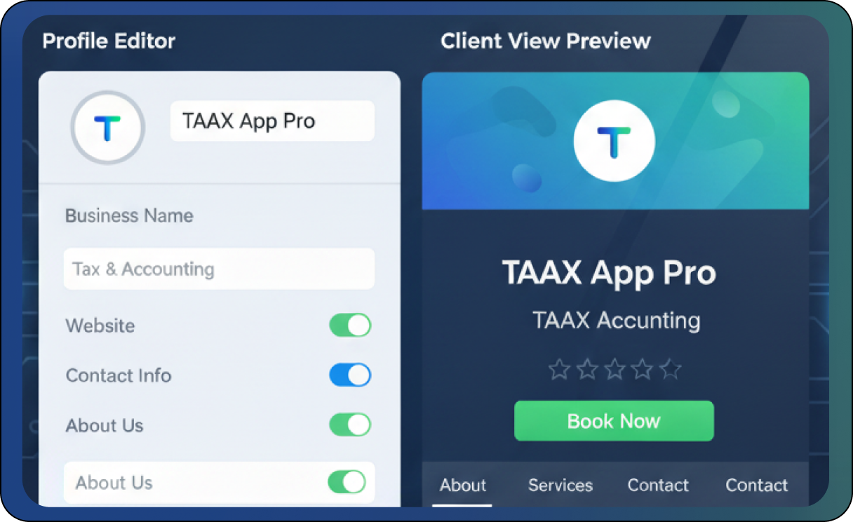 This is where your professional profile goes to work for you. Beyond being a static display, it’s an active marketing tool that leverages the power of the TAAX App Marketplace to drive real business growth.