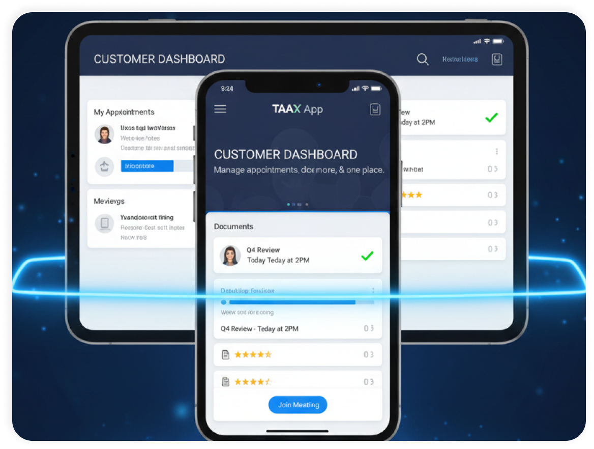 TAAX APP is your one-stop shop for success. Manage appointments, streamline workflows, connect with clients, and more – all from a single, user-friendly platform.