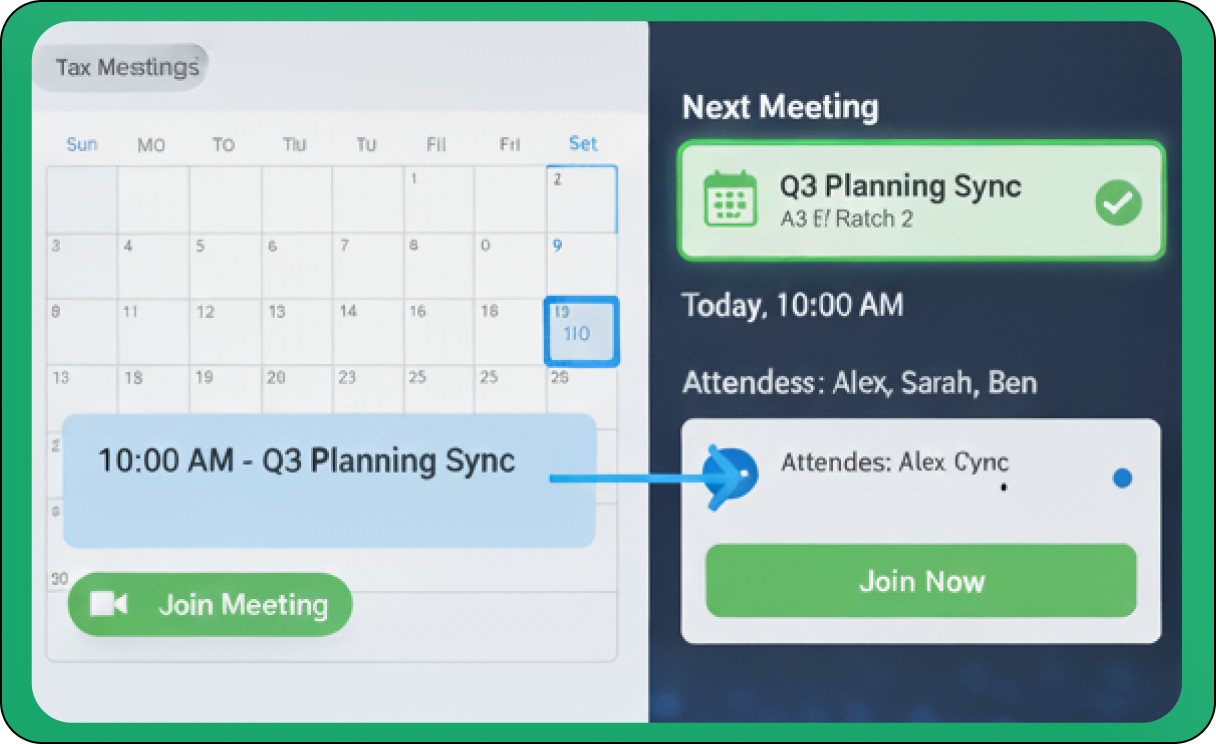Simplify the entire process of organizing and inviting participants to your virtual meetings. Our seamless integration ensures a streamlined, error-free workflow from the moment you conceive a meeting to the point of connection